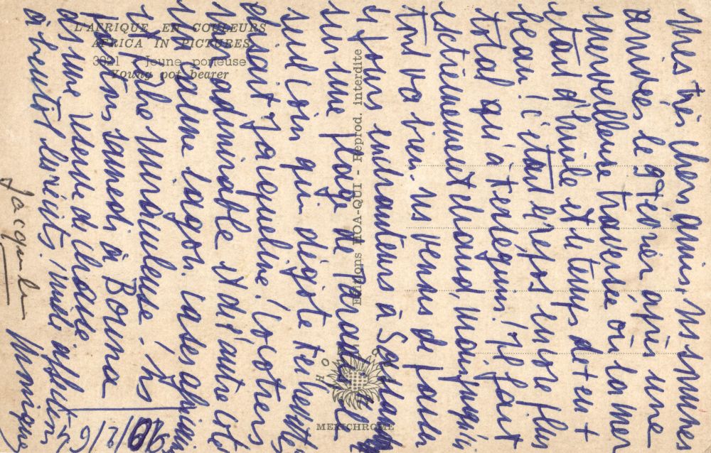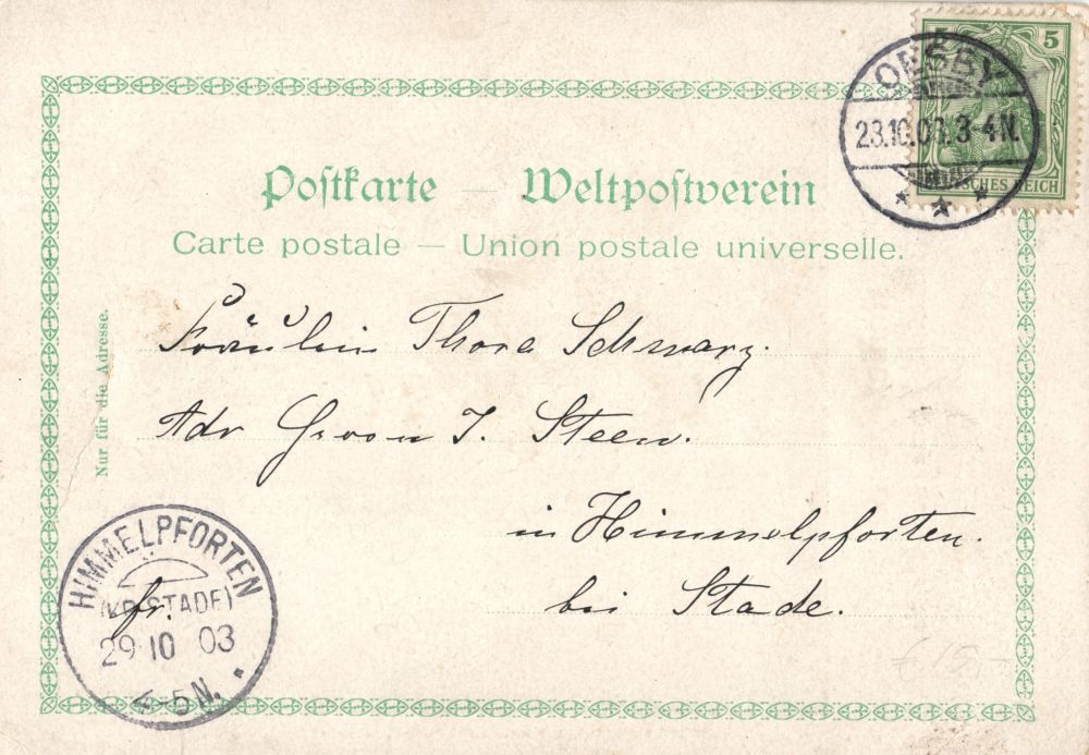 Condition: Good, used ca. 1950, creased in the center, writing pressure visible on frontside
